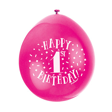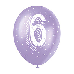 Pack Size 5. Each pack contains a mixture of Lavender, Yellow, Green, Pink, and Blue balloons. The balloons are printed on both sides and measure 30 cm when inflated.